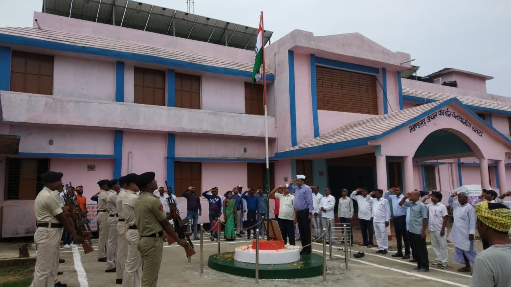 जिसके कारण दोनों ही स्थानों पर काफी सादगी के साथ सोशल डिस्टेंसिंग का पालन करते हुए झंडोत्तोलन का कार्यक्रम किया गया। मौके पर सभी प्रखंड कर्मी व जनप्रतिनिधि दोनों स्थानों पर उपस्थित थे।